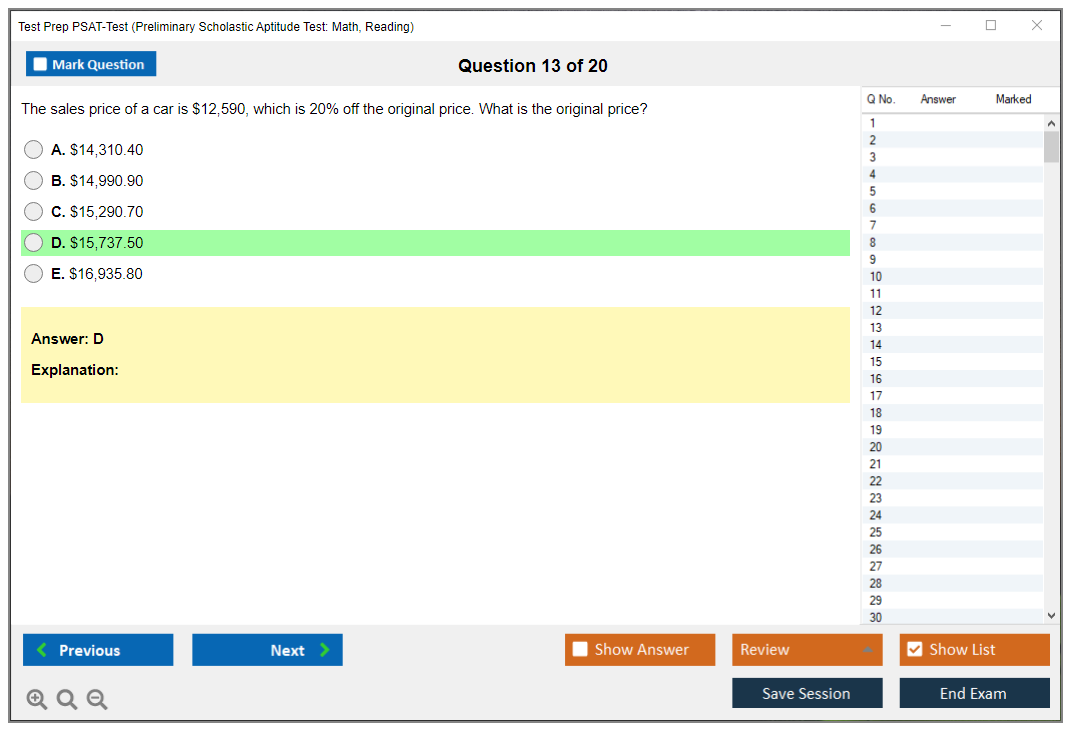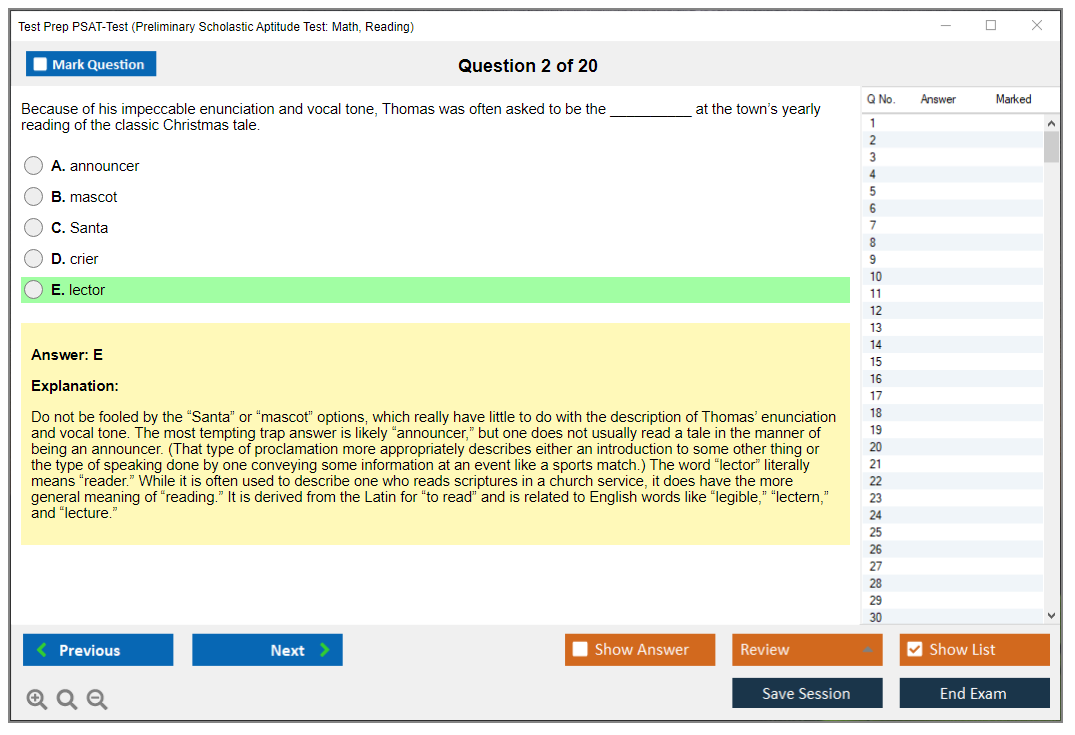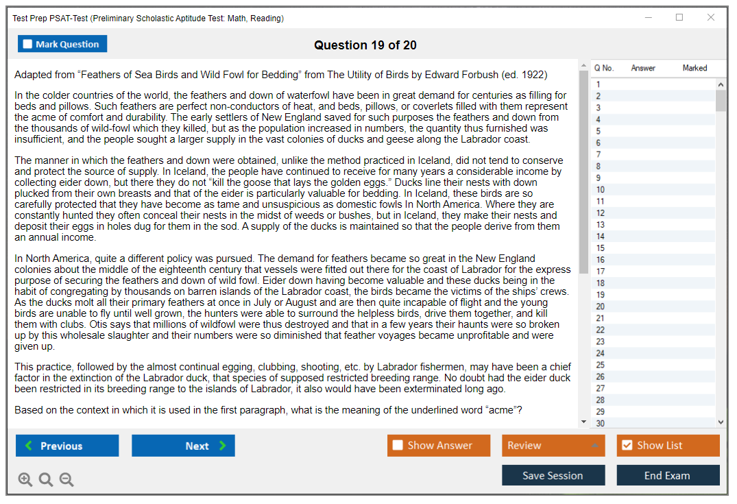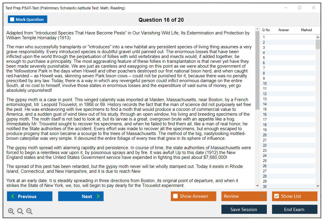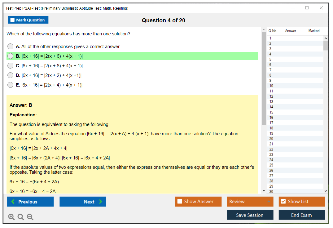 What are the Sample Questions of Test Prep PSAT-Test Exam?
