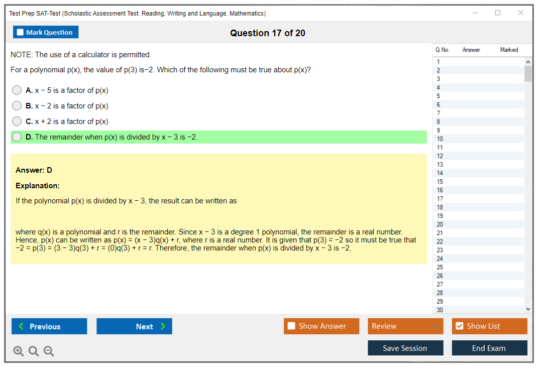 What are the Sample Questions of Test Prep SAT-Test Exam?