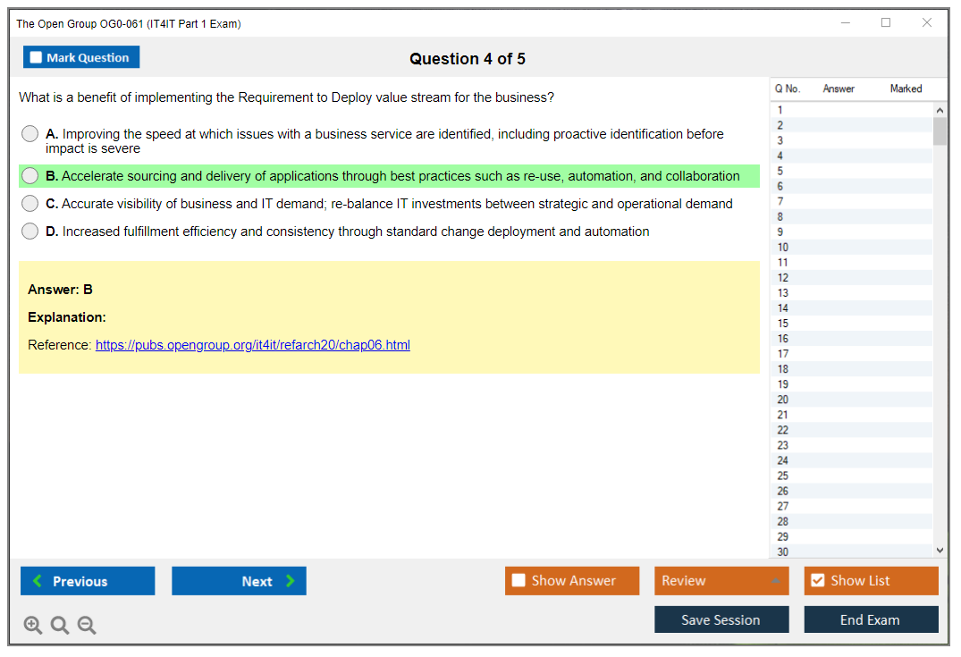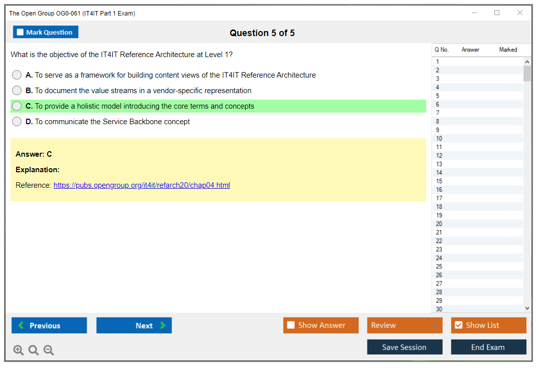 The Open Group OG0-061 Exam is specifically focused on the IT4IT Reference Architecture, which provides a comprehensive blueprint for the implementation of an integrated IT management system. This exam is aimed at professionals who are looking to validate their knowledge of IT4IT concepts and practices.
