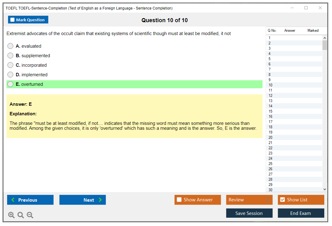 Introduction of TOEFL TOEFL-Sentence-Completion Exam!