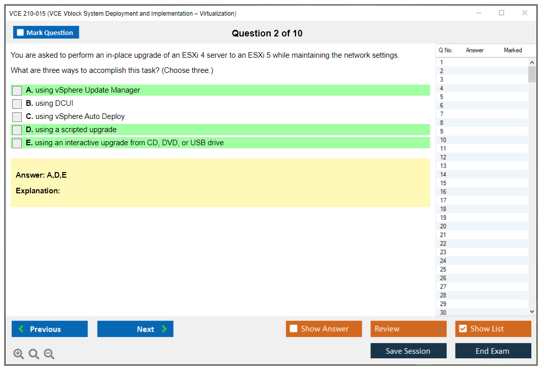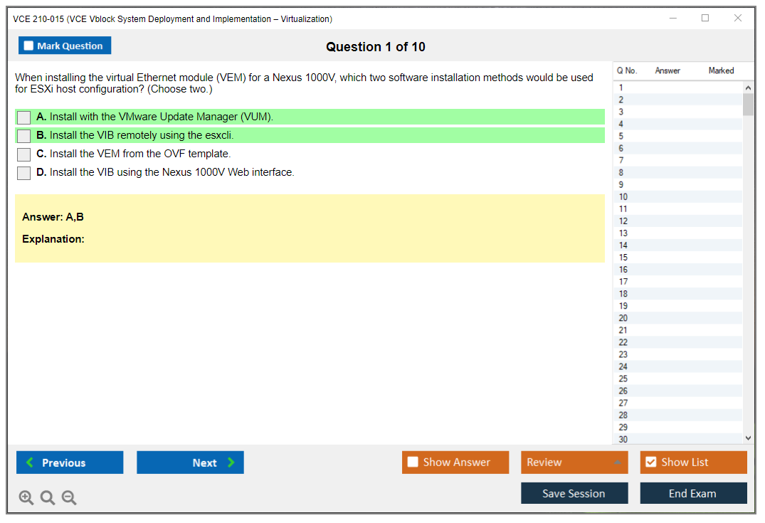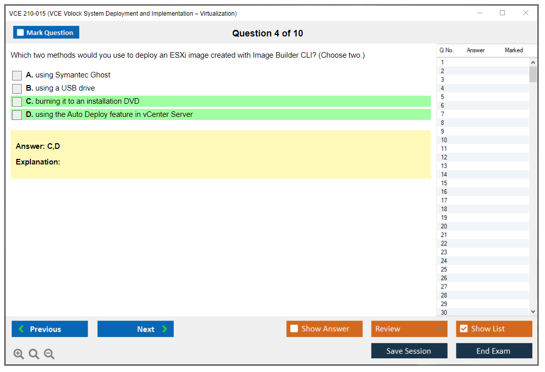 The VCE 210-015 exam is intended to validate the skills and knowledge required to effectively deploy and implement Vblock systems, particularly in the area of virtualization. It is aimed at IT professionals who work with Vblock systems and need to demonstrate their expertise in this area.