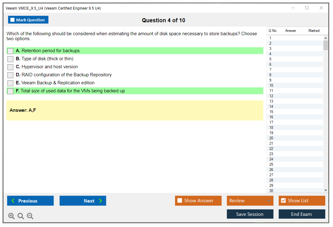 The Veeam VMCE_9.5_U4 (Veeam Certified Engineer 9.5 U4) Exam is a certification test designed to validate the skills and knowledge of IT professionals in using Veeam's backup, recovery, and replication software. It focuses on the 9.5 Update 4 version of Veeam's software.