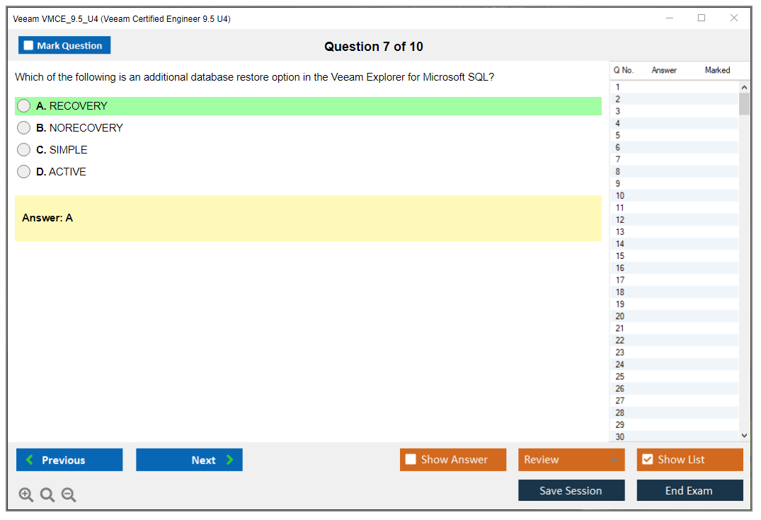 What is the Question Format of Veeam VMCE_9.5_U4 Exam?