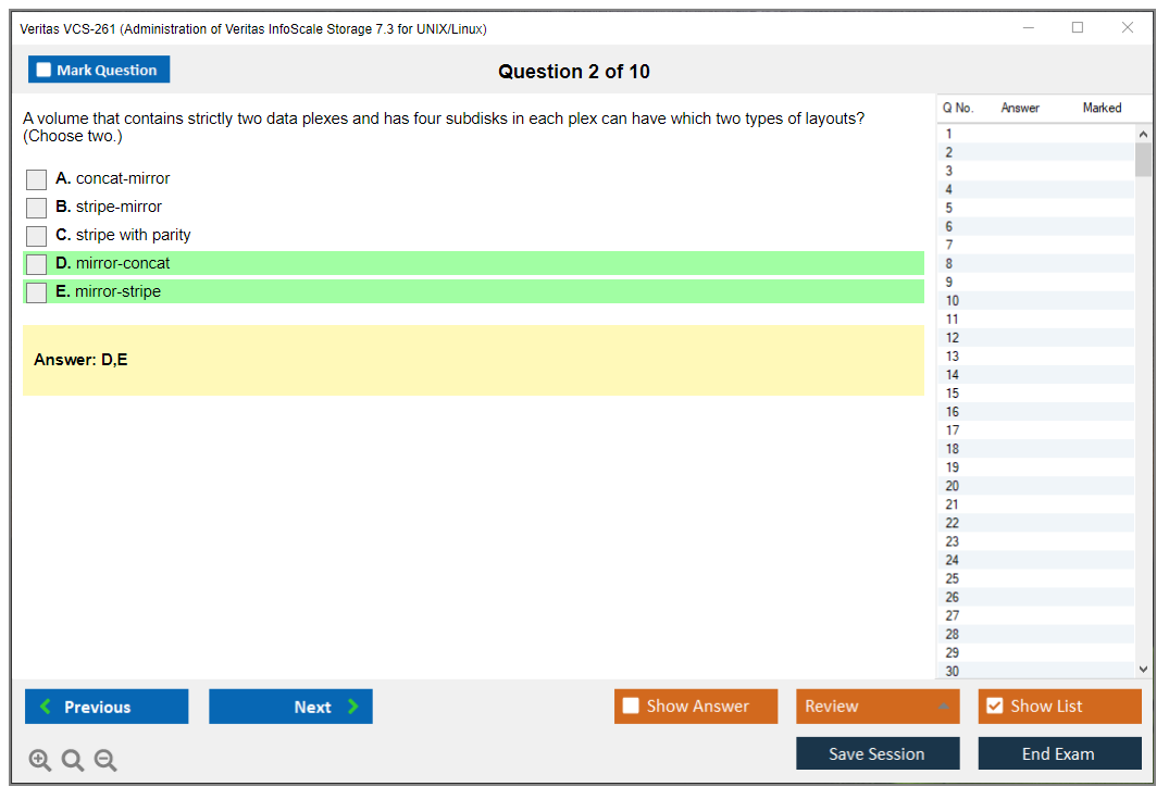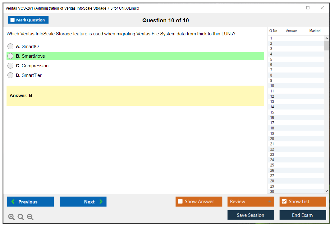 The Veritas VCS-261 exam, also known as the Administration of Veritas InfoScale Storage 7.3 for UNIX/Linux, is designed to validate the skills and knowledge of IT professionals in managing, configuring, and administering Veritas InfoScale Storage in a UNIX or Linux environment.