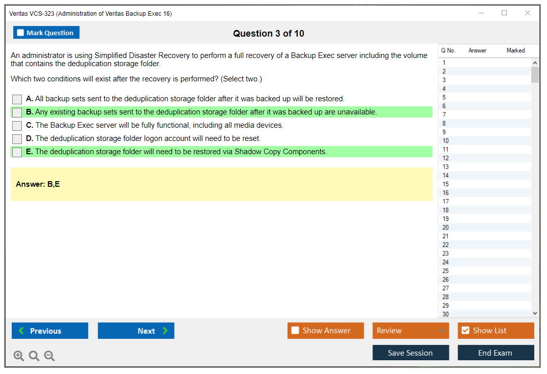 The Veritas VCS-323 exam is a certification test aimed at IT professionals who specialize in data protection and management using Veritas Backup Exec 16. The exam assesses the candidate's ability to perform administrative tasks and manage Backup Exec environments efficiently.