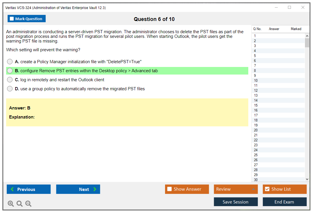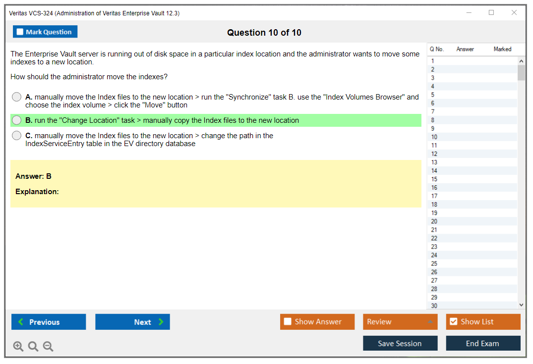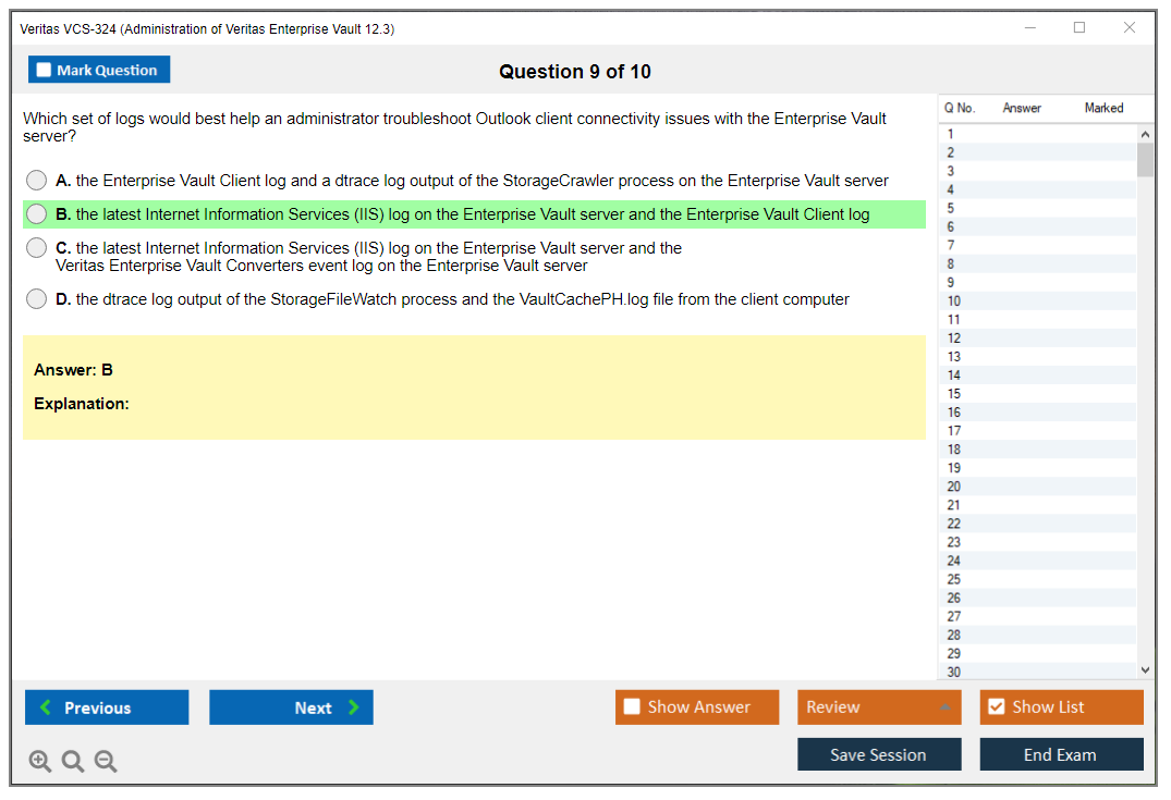 The Veritas VCS-324 (Administration of Veritas Enterprise Vault 12.3) exam is designed to test the knowledge and skills related to the administration and configuration of Veritas Enterprise Vault 12.3.