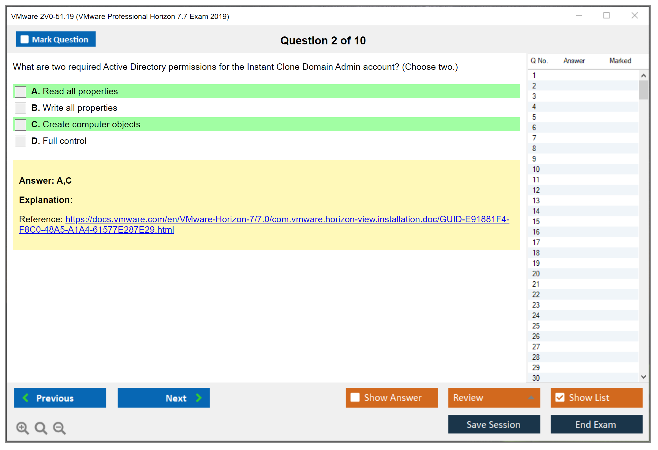 Note: VMware 2V0-51.19 (VMware Professional Horizon 7.7 Exam 2019) will not receive any new updates.