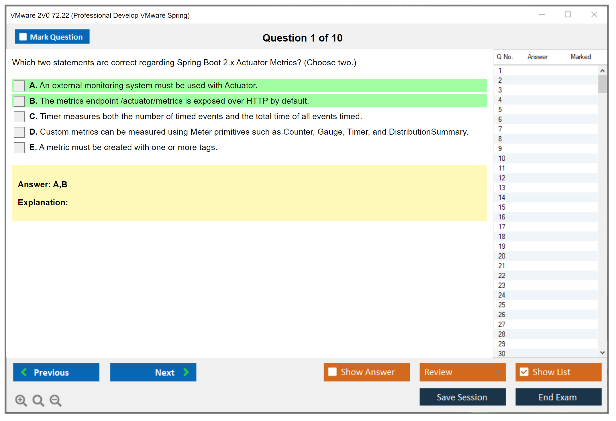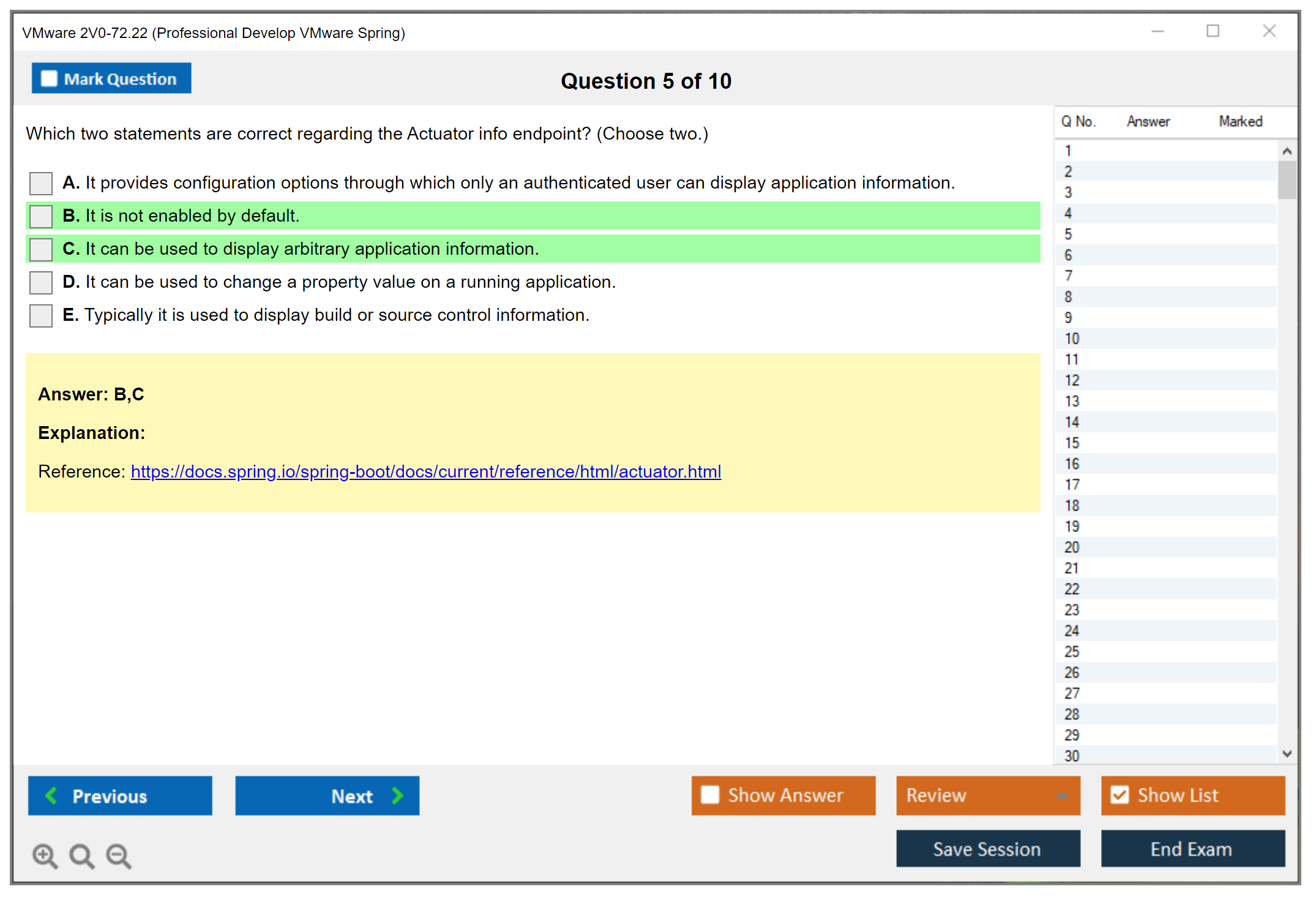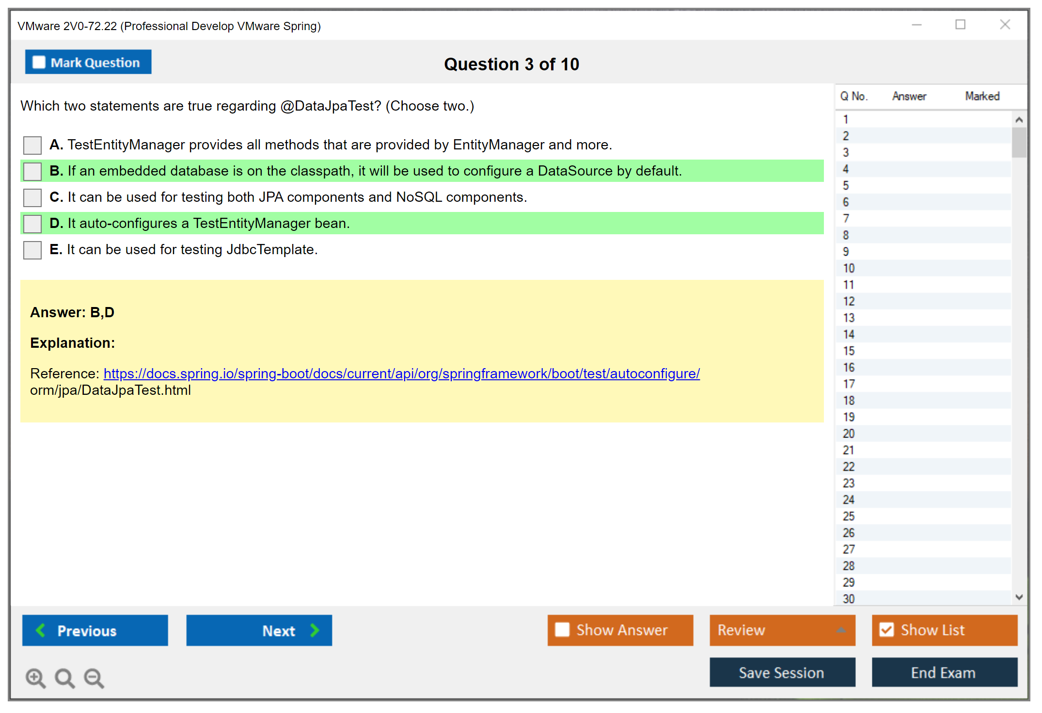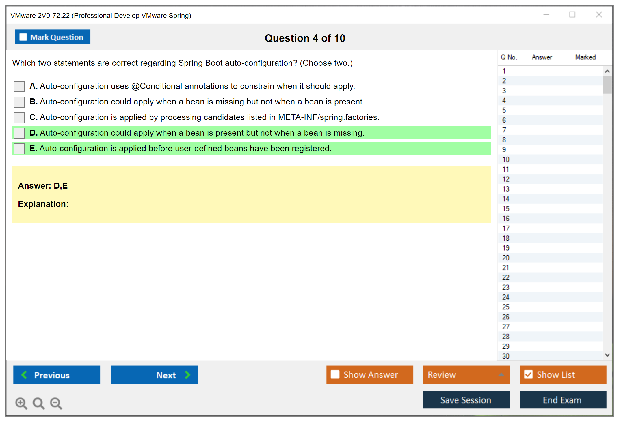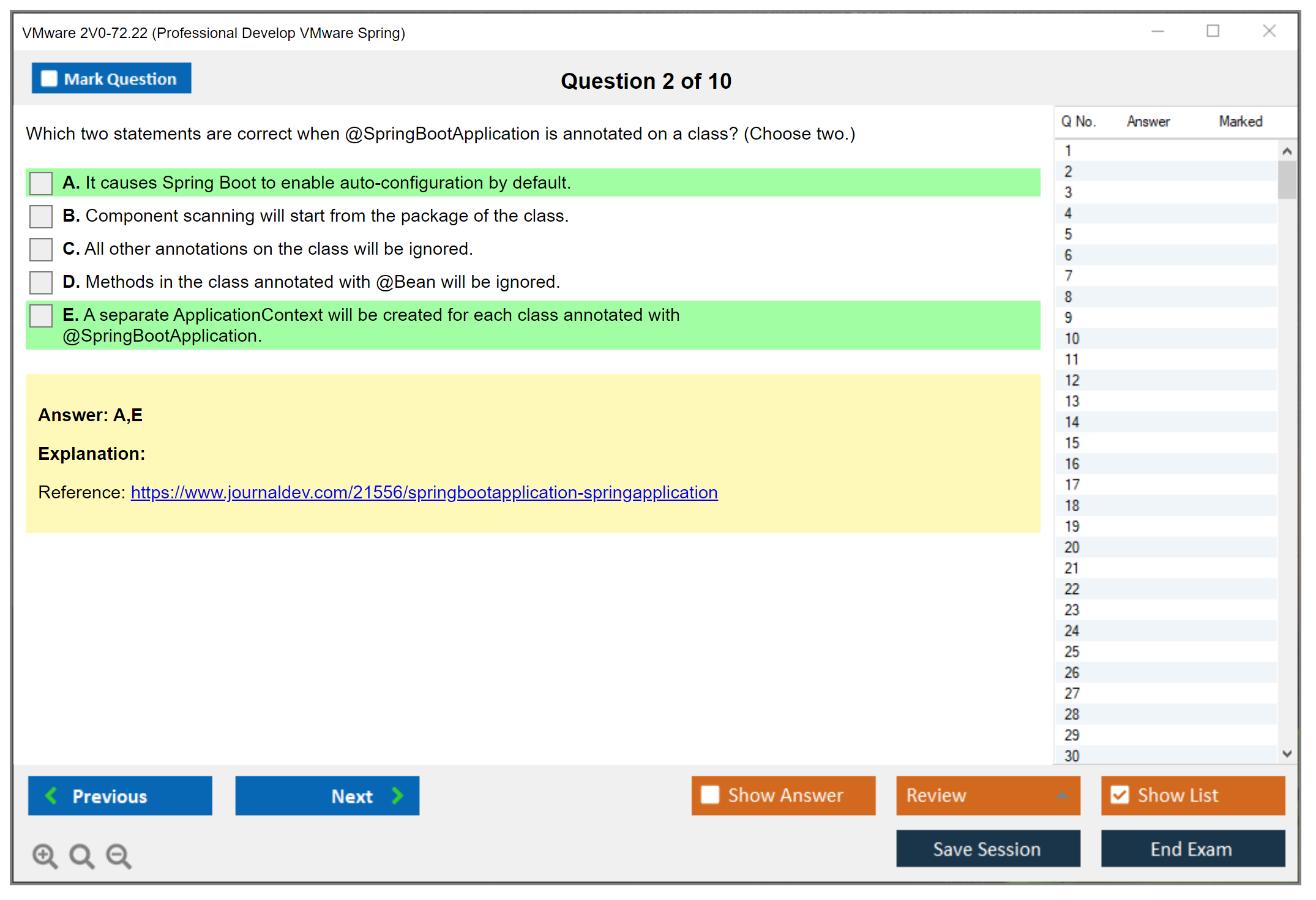 The VMware 2V0-72.22 (Professional Develop VMware Spring) exam validates a candidate's knowledge and skills in using the Spring framework to develop Java applications. It is designed for professionals who work with Spring and want to demonstrate their expertise.