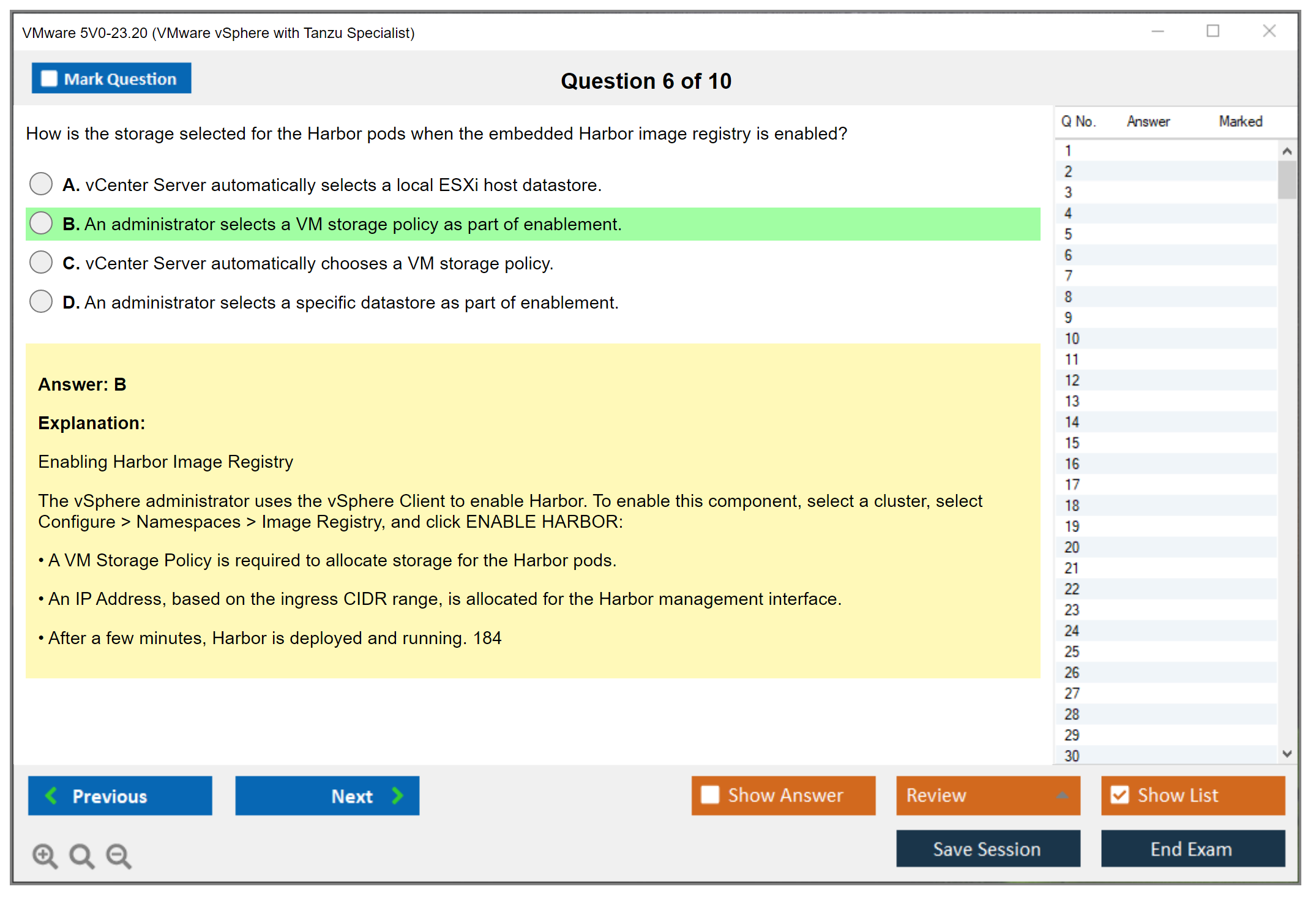 The VMware 5V0-23.20 (VMware vSphere with Tanzu Specialist) Exam validates a candidate's skills and knowledge in configuring, managing, and troubleshooting VMware vSphere with Tanzu. It focuses on deploying and managing Kubernetes workloads on vSphere infrastructure.