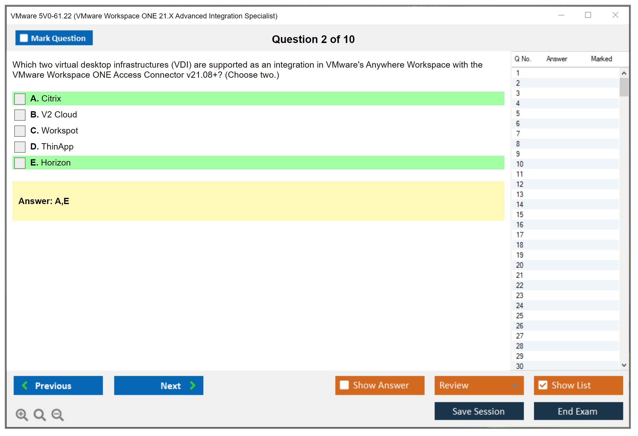 The question format of the VMware 5V0-61.22 Exam includes multiple-choice, multiple-select, and scenario-based questions.