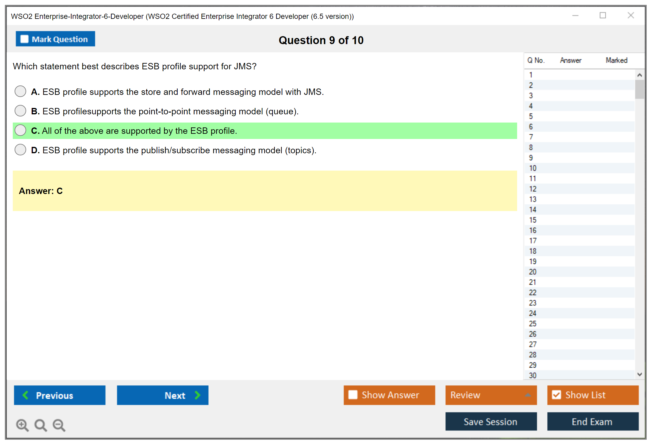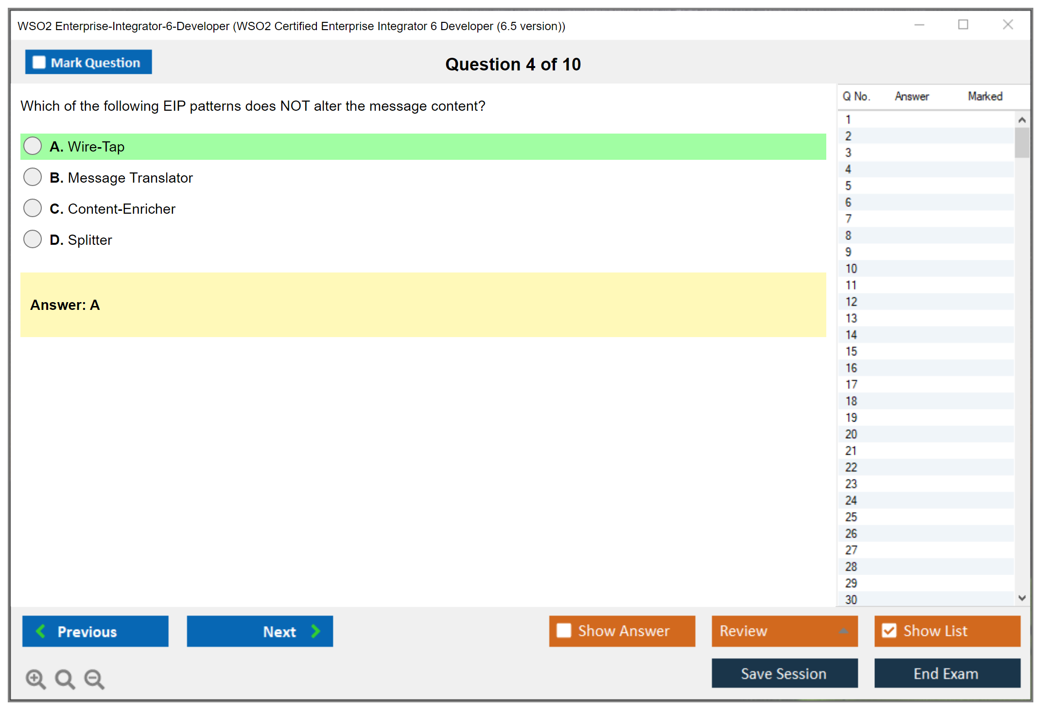 The question format of the WSO2 Enterprise-Integrator-6-Developer Exam includes multiple-choice, multiple-select, and scenario-based questions.